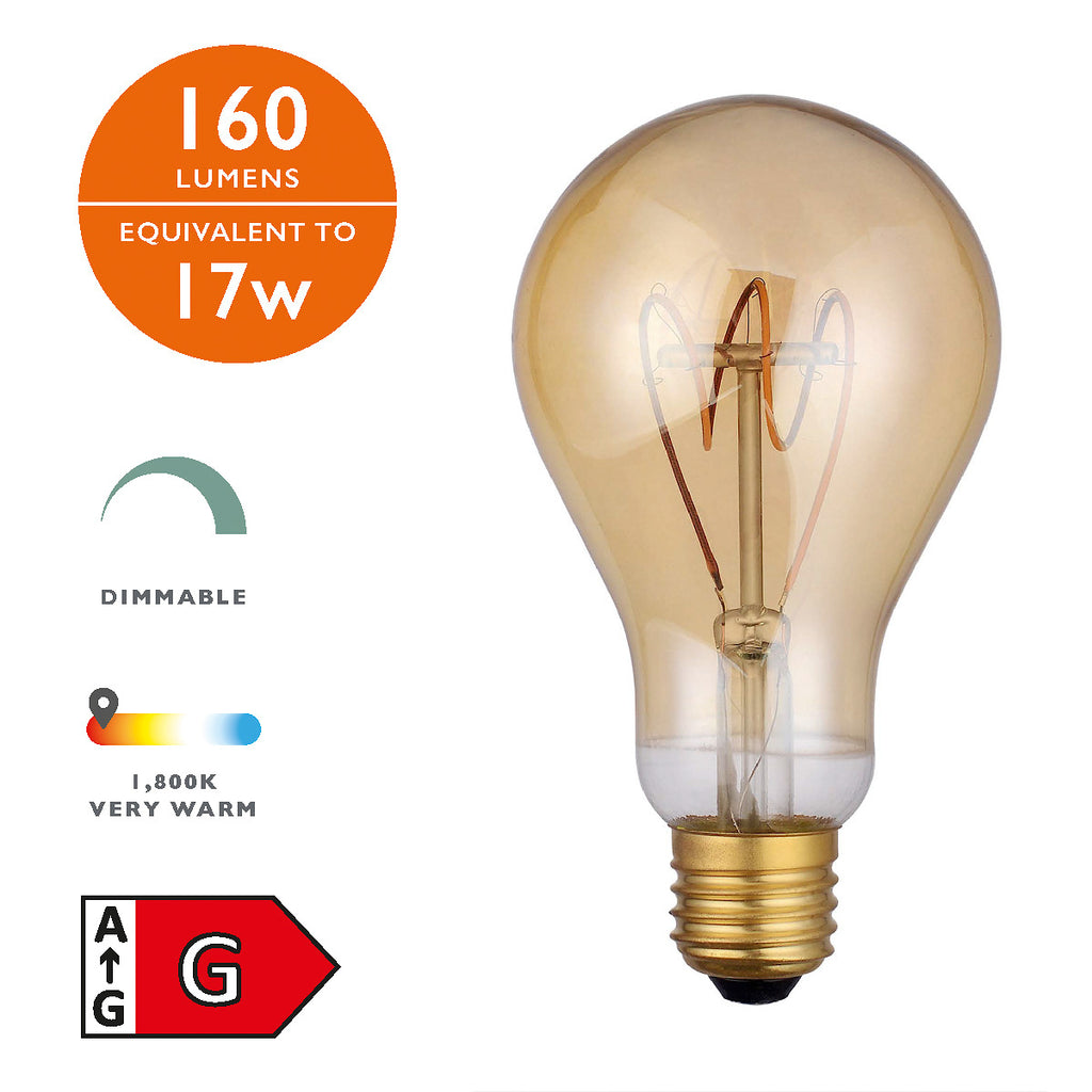 5PK E27 LED DIMMABLE VINTAGE LGE GLS LAMP 4W 160 LUMENS - Sold in a Pack of 5 - This 4w E27 / ES Vintage Filament LED GLS Lamp 160 Lumen Dimmable 1800k Colour Temperature (Warm White) 15,000 Hours Average Lifespan