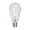 The bulb features a bayonet (B22) cap and a clear glass envelope. When switched off, it exhibits a white, twisted LED filament, embracing the look of traditional bulbs and without the distracting glare of the more common yellow toned LED filaments. It reaches full brightness in under 0.5 seconds, providing instant illumination—unlike older fluorescent energy-saving lamps that often flickered upon activation.