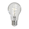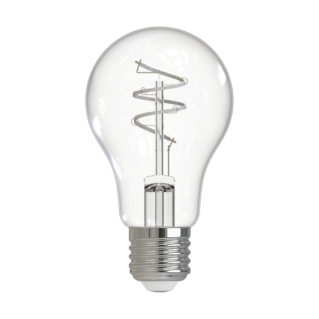 The bulb features an ES (E27) cap and a clear glass envelope. When switched off, it exhibits a white, twisted LED filament, embracing the look of traditional bulbs and without the distracting glare of the more common yellow toned LED filaments. It reaches full brightness in under 0.5 seconds, providing instant illumination—unlike older fluorescent energy-saving lamps that often flickered upon activation.
