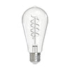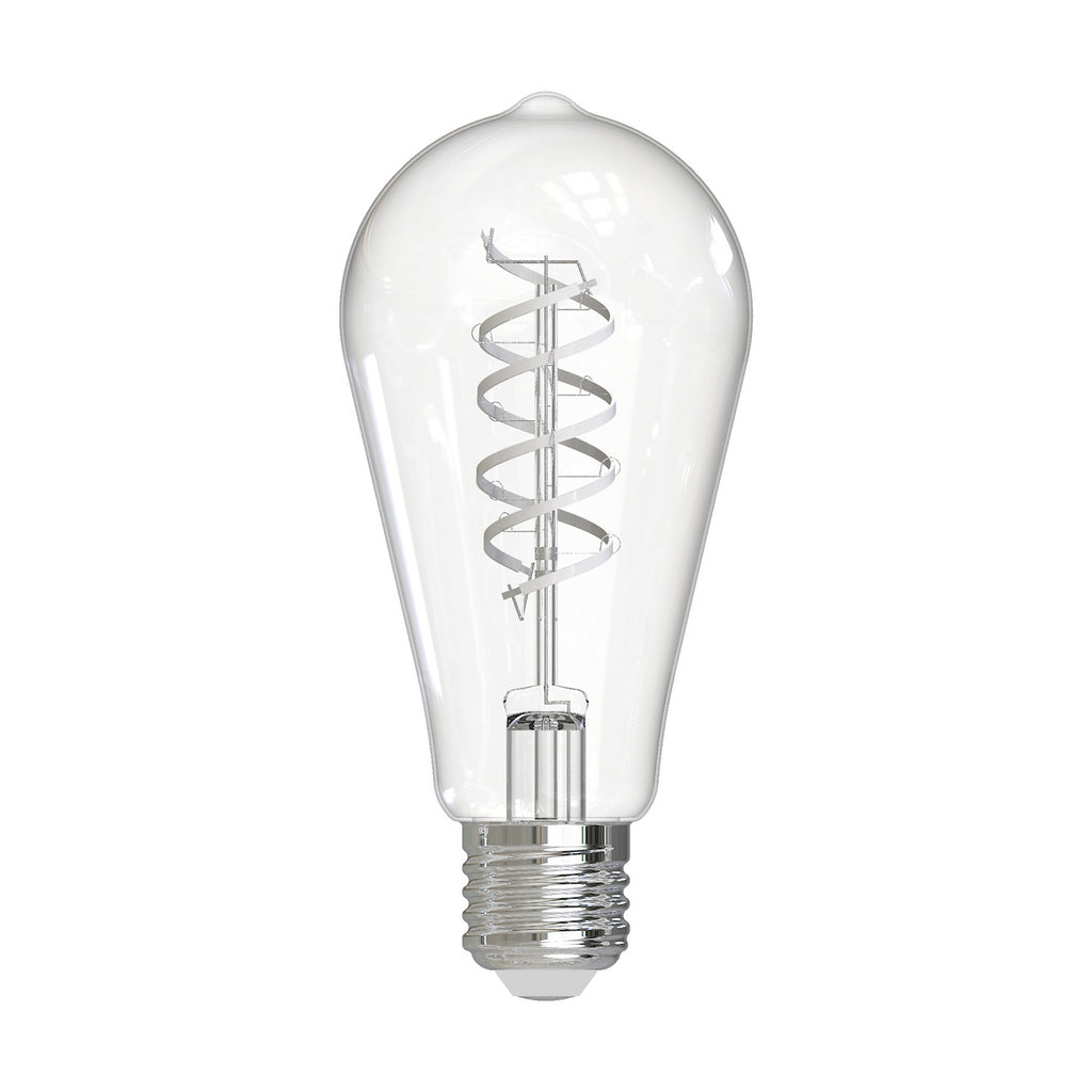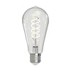 The bulb features an ES (E27) cap and a clear glass envelope. When switched off, it exhibits a white, twisted LED filament, embracing the look of traditional bulbs and without the distracting glare of the more common yellow toned LED filaments. It reaches full brightness in under 0.5 seconds, providing instant illumination—unlike older fluorescent energy-saving lamps that often flickered upon activation.