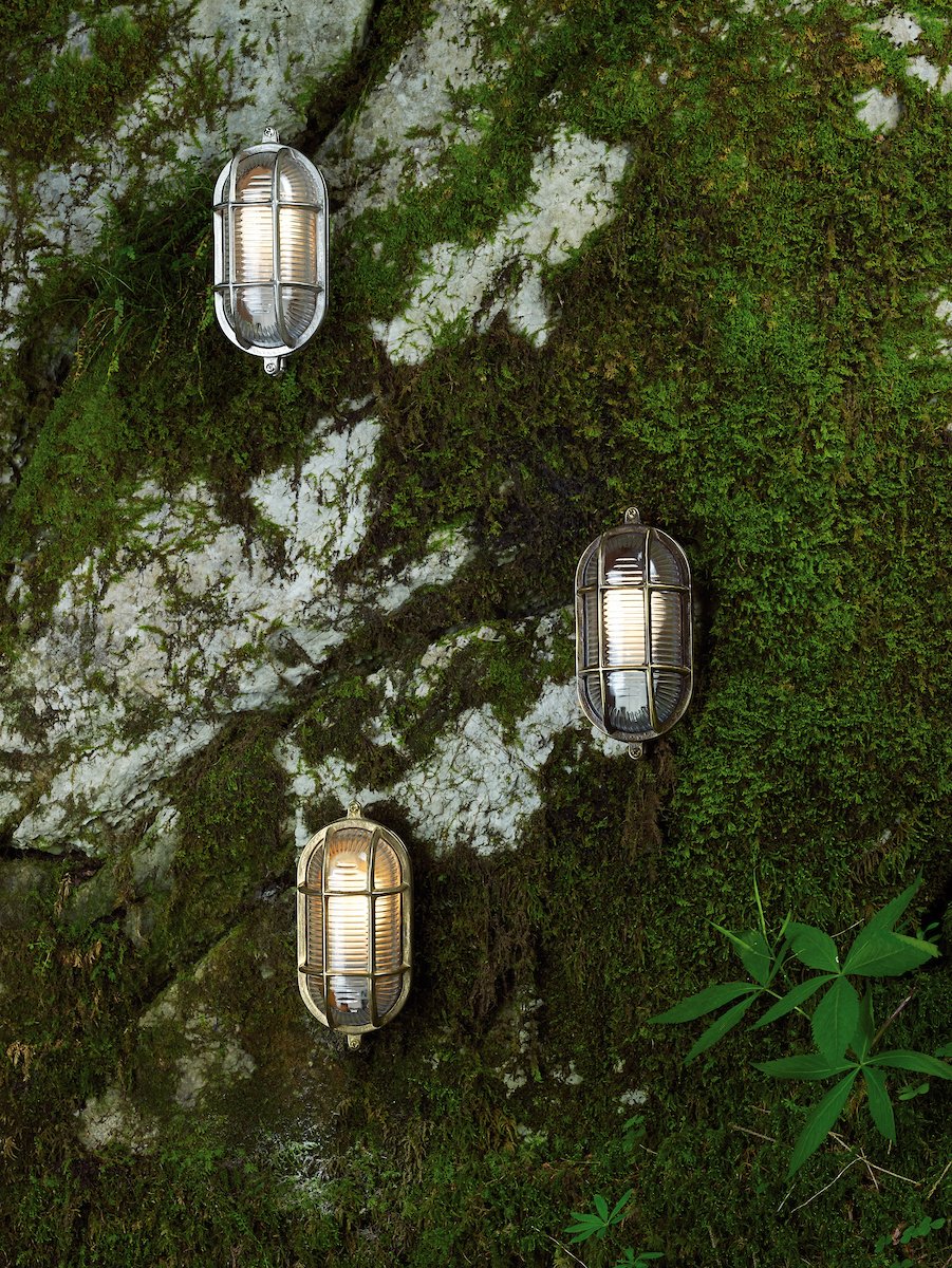Admiral Small Oval Wall Bulkhead Antique Brass IP64 - Solid brass wall light, manufactured in the EU and cast with a raw textured finish. IP64 rated and suitable for indoor and outdoor use, the fitting can be wall or ceiling mounted. 2 year guarantee against corrosion.