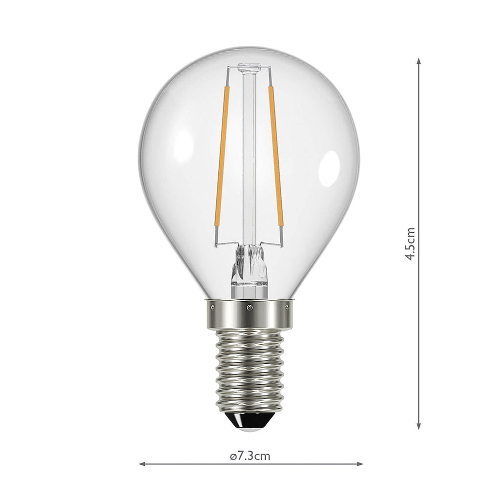 E14 (SES) CLEAR GOLF LED LAMP, 4W, 400 LUMENS, 2700K, WARM WHITE, DIMMABLE