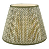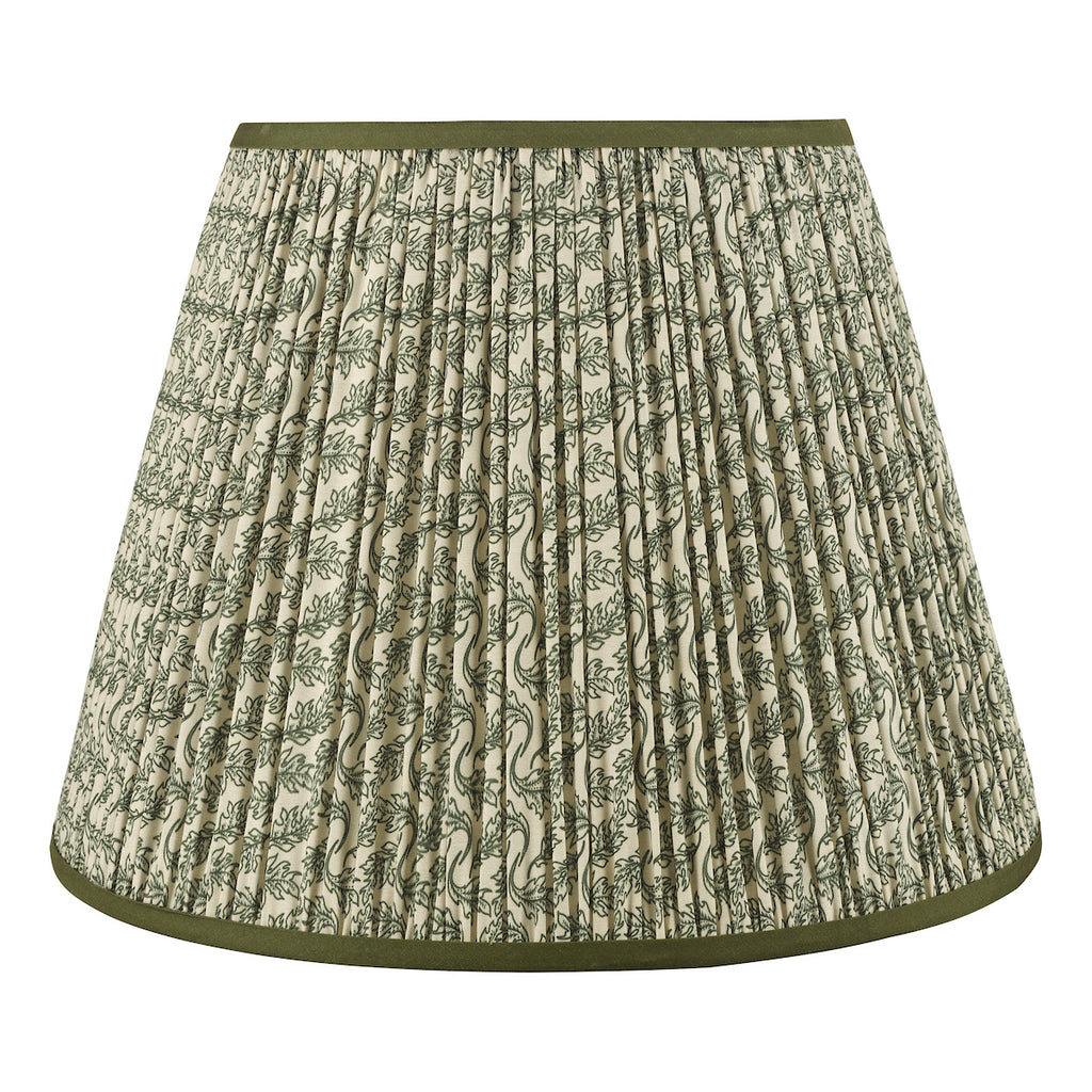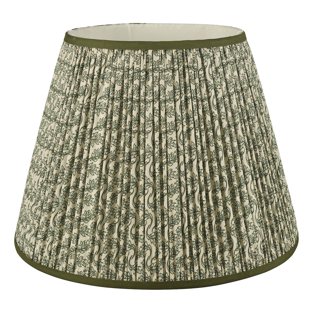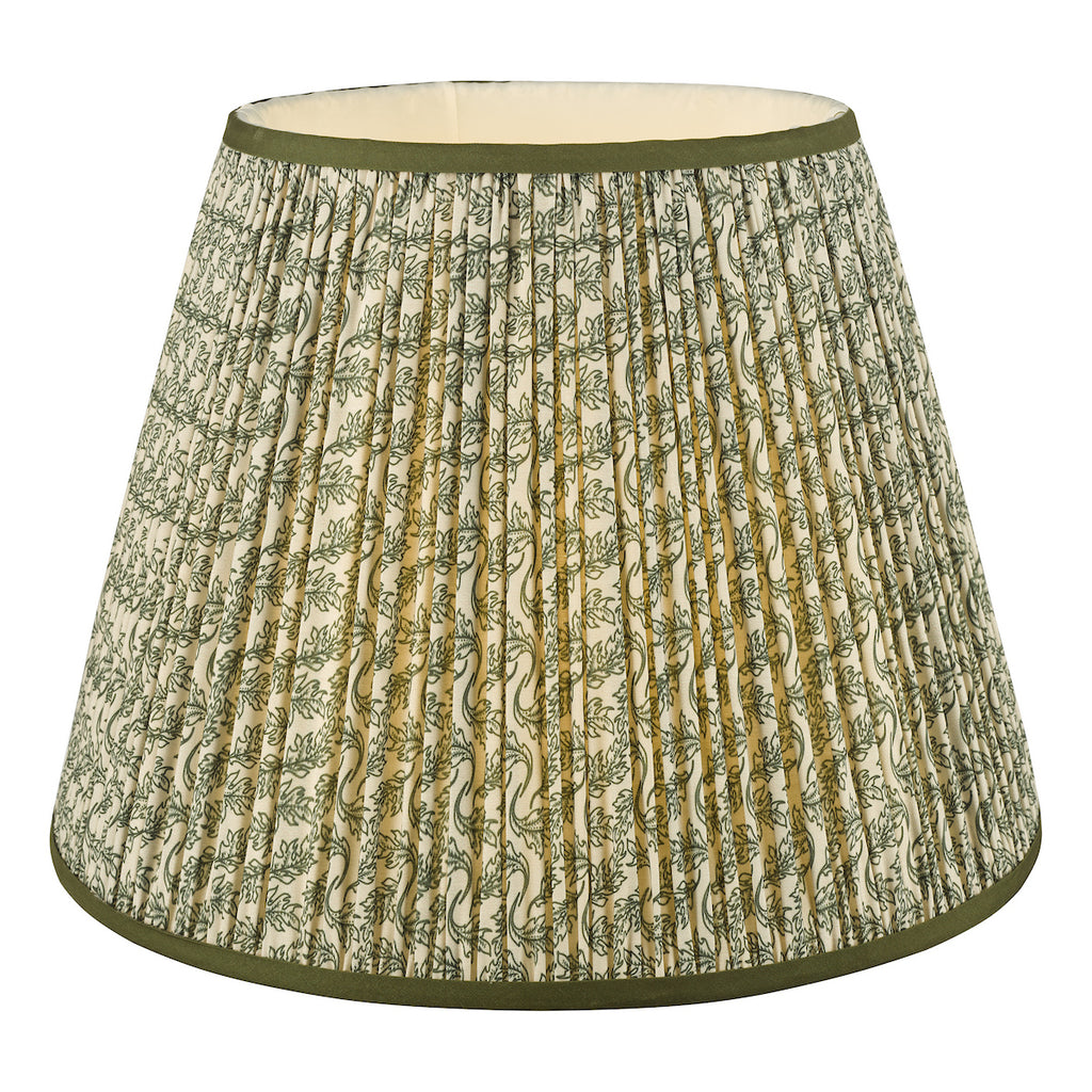 Esther Green Cotton Empire Shade 40cm - The Esther shade adds a touch of heritage charm to any interior, blending subtle pattern with timeless appeal. Made from a cotton-rich fabric and finished with a neat taped edge, it features a soft neutral background with a delicate leaf motif that suits both traditional and modern country schemes.