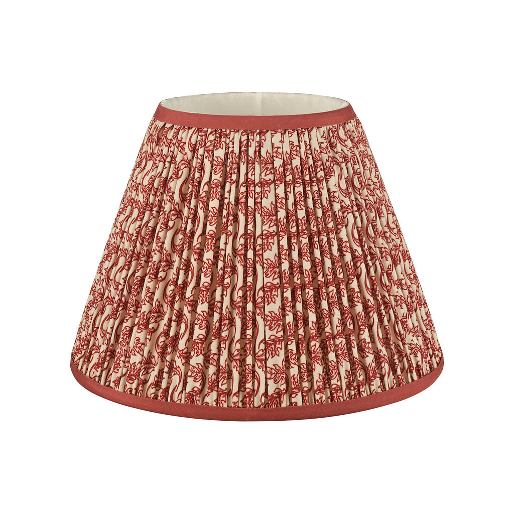 Esther Red Cotton Empire Shade 30cm - The Esther shade adds a touch of heritage charm to any interior, blending subtle pattern with timeless appeal. Made from a cotton-rich fabric and finished with a neat taped edge, it features a soft neutral background with a delicate leaf motif that suits both traditional and modern country schemes.