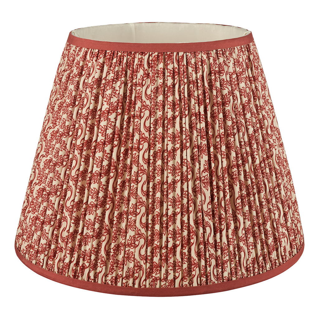 Esther Red Cotton Empire Shade 40cm - The Esther shade adds a touch of heritage charm to any interior, blending subtle pattern with timeless appeal. Made from a cotton-rich fabric and finished with a neat taped edge, it features a soft neutral background with a delicate leaf motif that suits both traditional and modern country schemes.