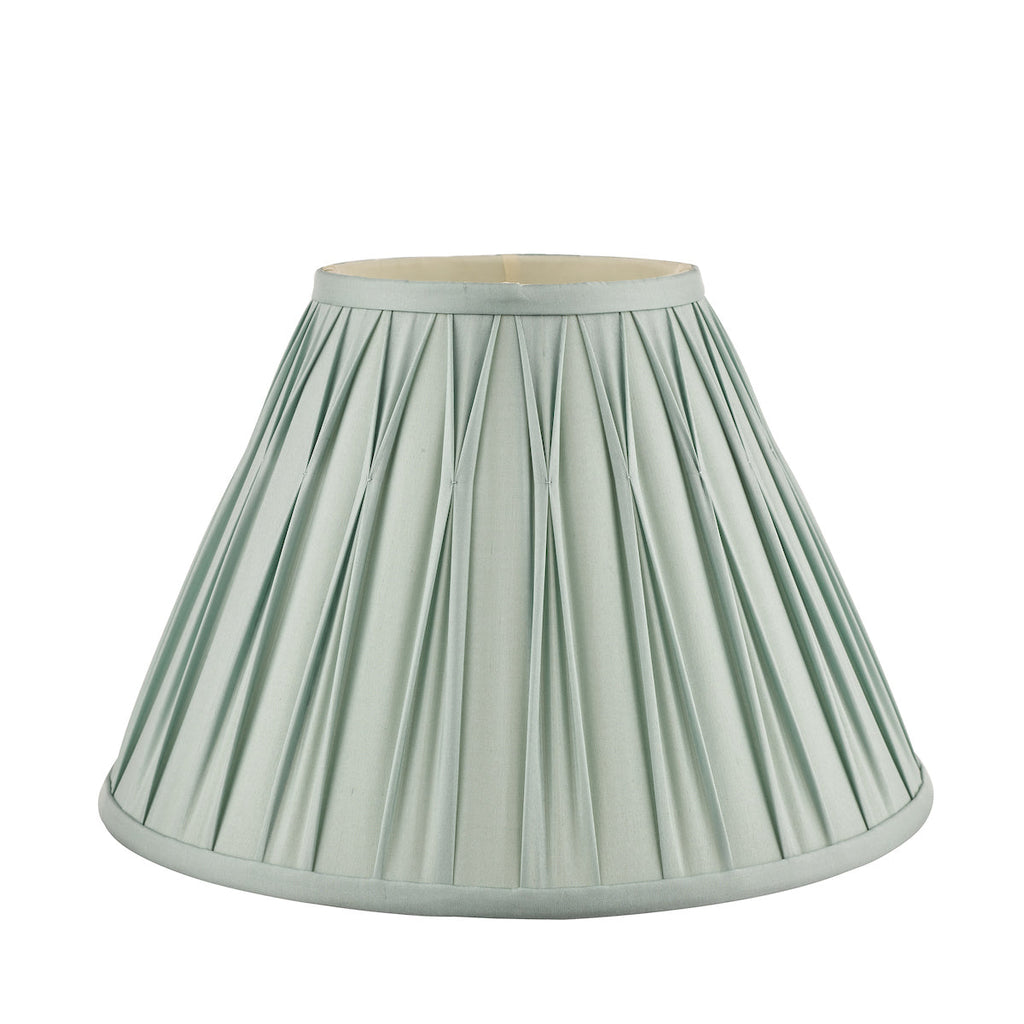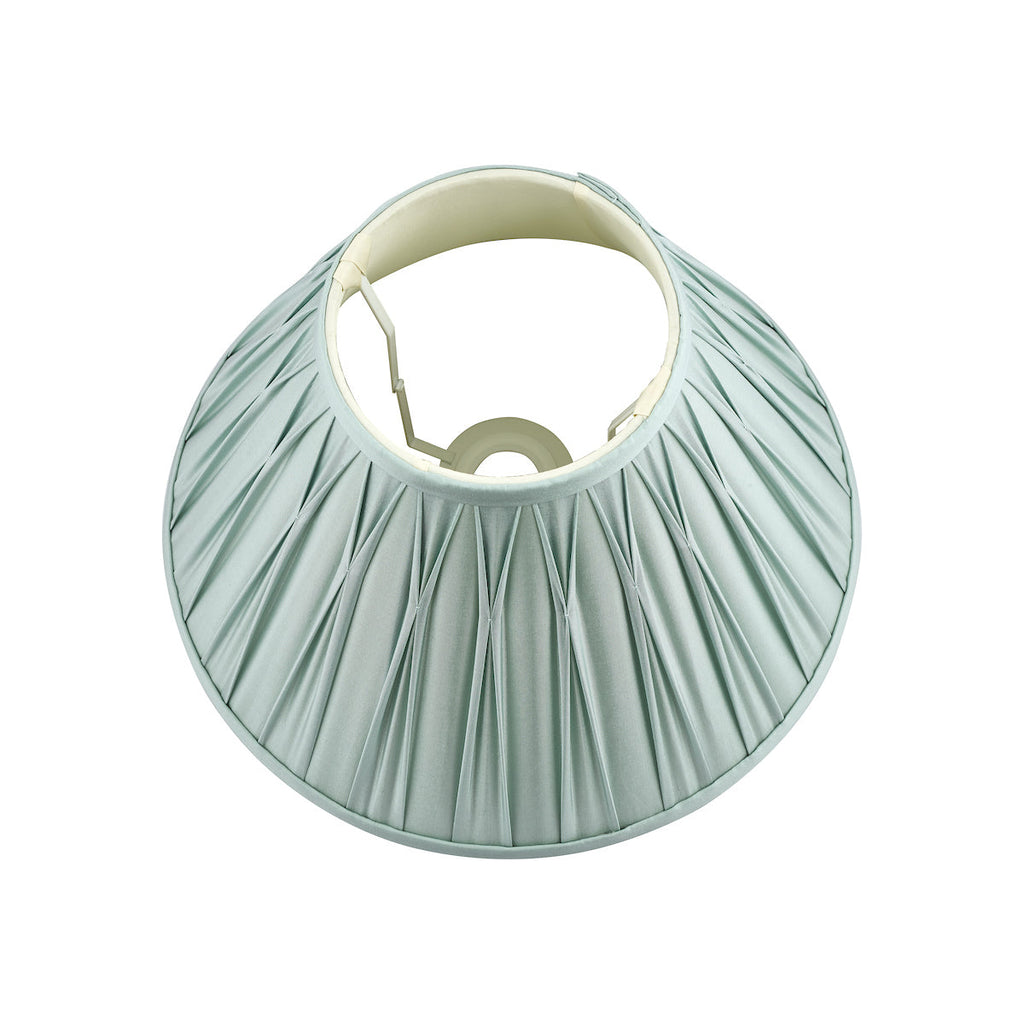 Fenn Silk Shade Duck Egg 10''. SPECIFICATIONS: H: 165MM DIA/W: 255MM D: 255MM MAX WATT: 1 X 60W to fit E27 (non elec) + Reducer GLS (BULB NOT INC.) FINISH: BLUE