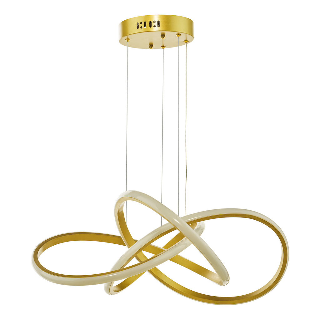 Fusion Pendant Satin Gold LED - The Fusion pendant is a striking design that blends contemporary minimalism with modern performance. Crafted from aluminium in a soft satin gold finish, it features a white acrylic diffuser for smooth, glare-free light.