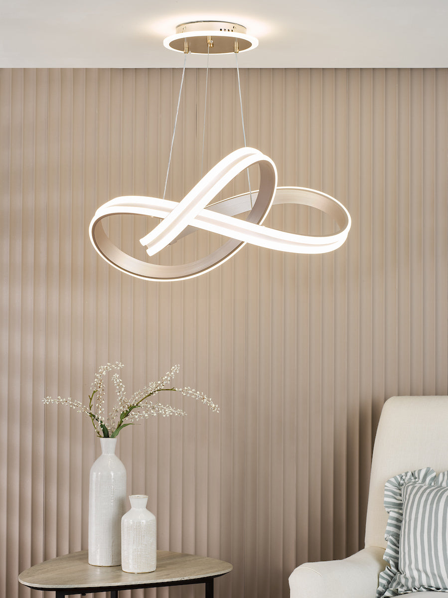 he Gavino pendant is perfect for larger living rooms, dining areas, kitchens, stairwells, or hospitality settings where statement style and exceptional light output are equally important. Height is adjustable at the point of installation (35-135cm).