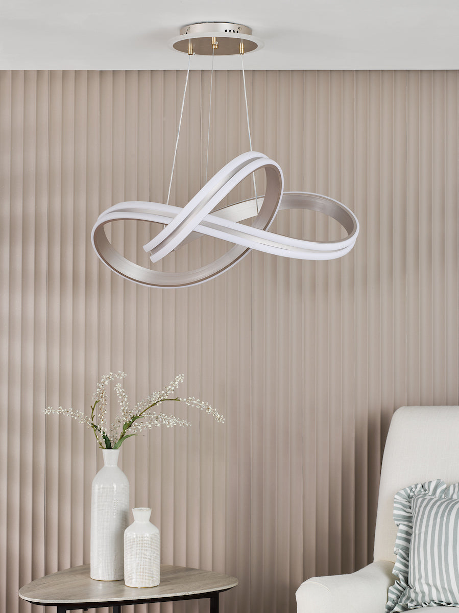Gavino Pendant Brushed Silver LED - The Gavino pendant is a bold design that combines contemporary minimalism with modern performance. Finished in soft brushed silver, it features a white acrylic diffuser that provides smooth, glare-free illumination.