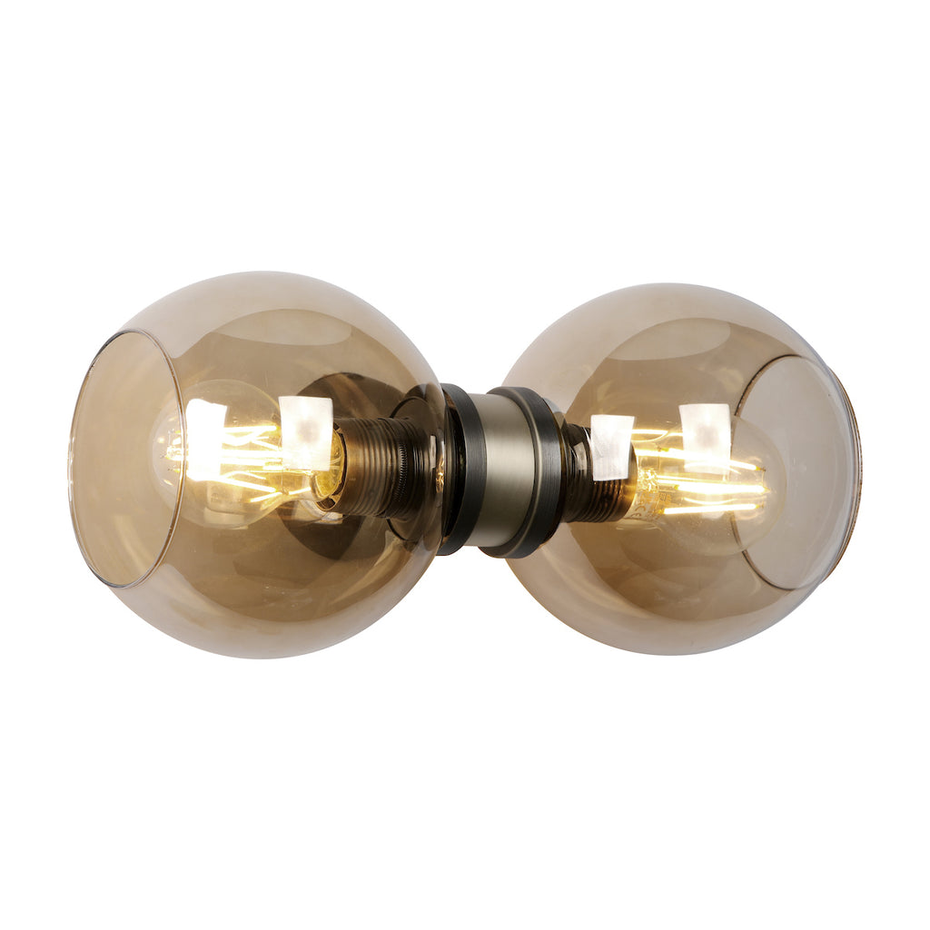 Juno Double Wall Light in Antique Brass and Amber Glass - Our new Juno collection is a dramatic statement design combining smoked rounded glass with the refined elegance of both butter brass and antique brass working together to create an elegant hybrid finish and will add a dramatic impact to any space.