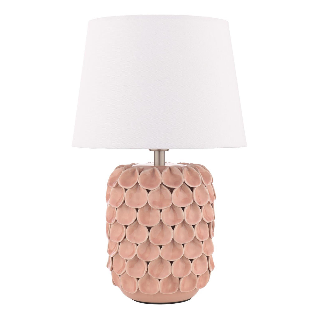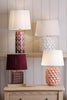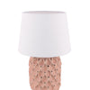 Laura Ashley Marwick Table Lamp Pink Ceramic and Brushed Silver With Shade - Inject some personality into your space with the Marwick table lamp pink with shade from Laura Ashley. Its textured pink ceramic base makes an eye-catching statement, while the natural fabric shade casts a warm, inviting glow. Blend contemporary edge with timeless accents to suit your unique sense of style. Functional and fashionable, this versatile lamp looks chic whether placed in the living room, hallway, atop a side table or console. From the trusted Laura Ashley brand, you can expect the same quality design and attention to detail that they're renowned for. Table Lamp. The Marwick comes complete with a White Linen Drum shade. Bulb not included; takes 1 x 60W max SES GB. We recommend our BUL-E14-LED-3 bulb. Base Measurements H27.5 x Ø15cm Shade Measurements H18 x Ø25cm