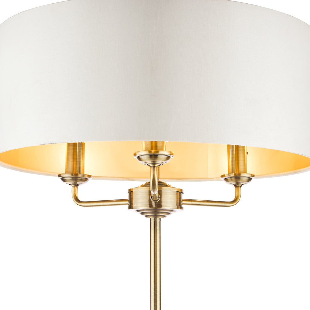 Sorrento Brushed Chrome 3 Light Floor Lamp with Natural Shade - Chic and on-trend, the attractive Sorrento floor light from Laura Ashley boasts three lights on arms, all encased in a single contemporary drum shade in natural slubbed linen with a metallic silver inner. A straight stem rises up from a round, flat base with stepped, Art Deco style, detail. This triple light floor lamp comes in a velvety brushed chrome finish, adding grown-up atmosphere to your dining or living area. This floor lamp has a discreet clear cable with convenient foot switch. SPECIFICATIONS: H: 1600MM DIA/W: 470MM MAX WATT: 3 X 40W E14 (SES) CNDL (BULB NOT INC.) CLASS: 2 - Double Insulated IP RATING: IP20 FINISH: SATIN NICKEL,NATURAL SWITCH TYPE: Foot Switch