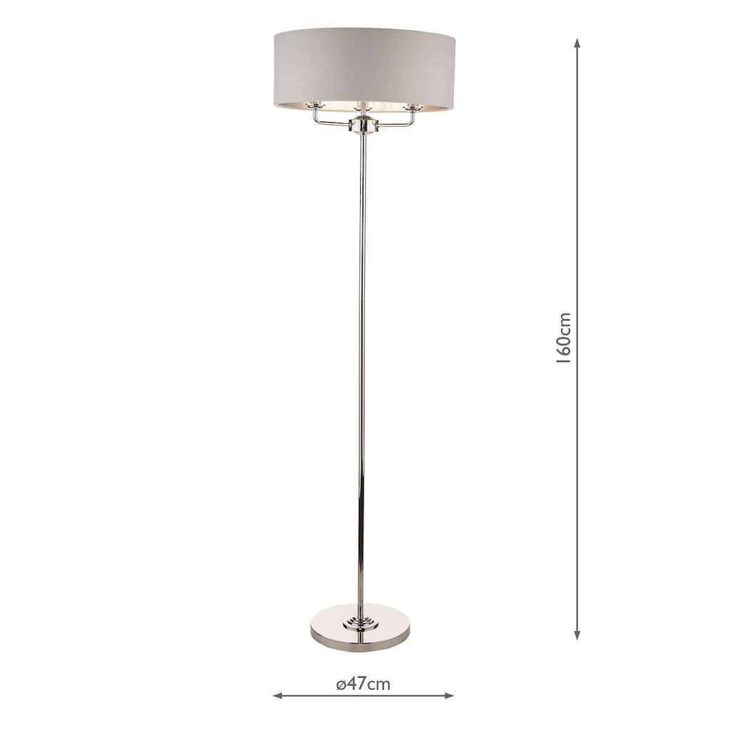 Sorrento Polished Nickel 3 Light Floor Lamp with Silver Shade
