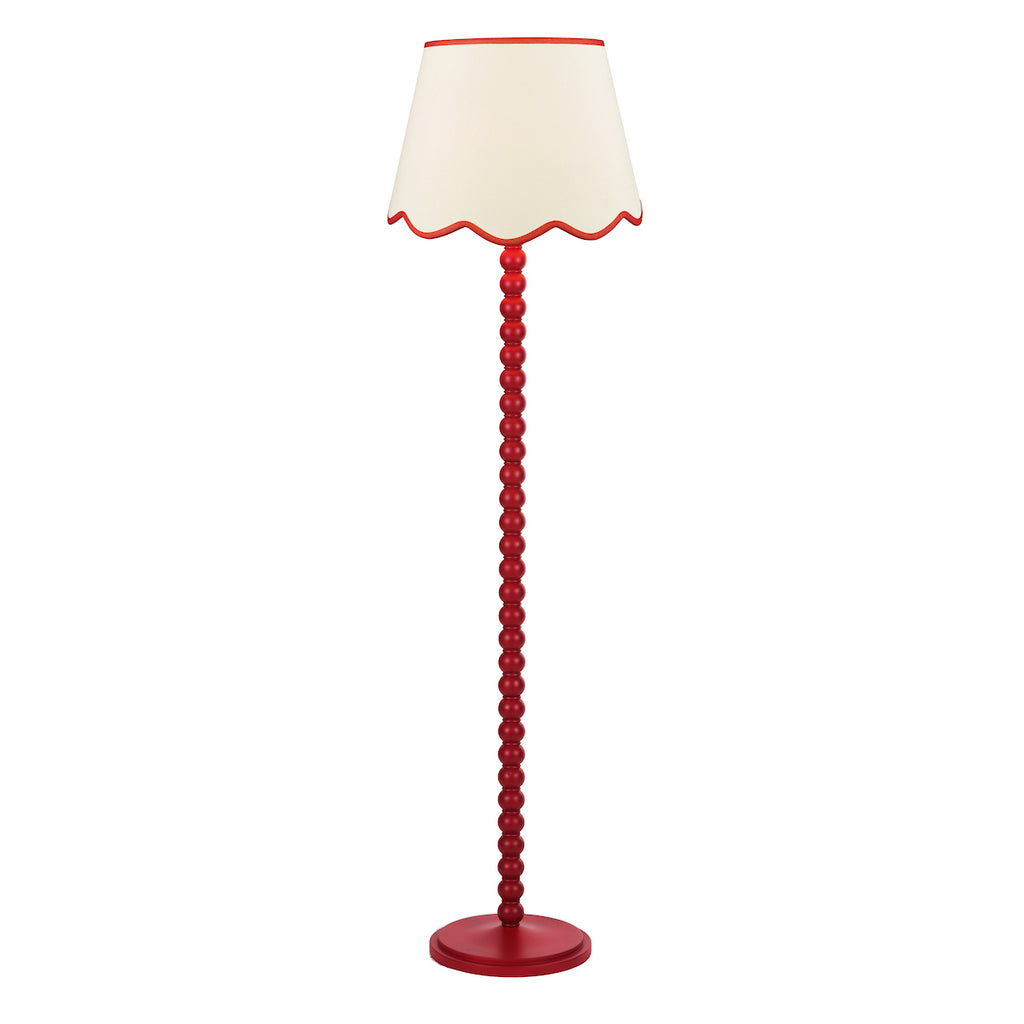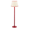 Spool Floor Lamp Red With Shade - Make a statement with the Spool Floor Lamp paired with the Poma Shade – a striking blend of colour, form and natural texture. The tall, sculptural bobbin-style base in a stricking red hue brings playful character and modern charm, while the Poma Shade in natural linen with a red scalloped edge adds soft texture and Boho-inspired elegance.