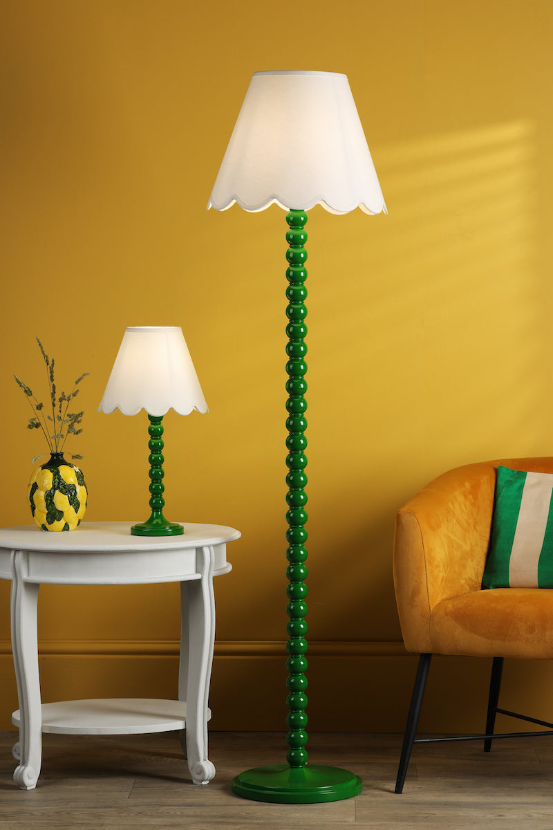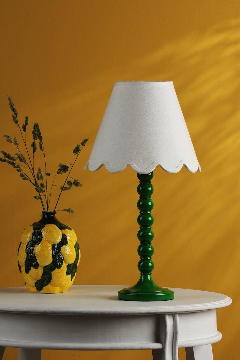 Spool Table Lamp Gloss Green - Base Only - Introducing the Spool Table Lamp Green Base Only – a playful twist on the classic Bobbin wood turning technique. Sold as a base only, this lamp invites you to express your personal style by selecting the perfect shade through our convenient configurator. With a delightful fusion of modern design and industrial charm, it's the ideal addition to infuse any space with a touch of contemporary flair. Crafted with a nod to the Arts and Crafts movement's bobbin legs, this lamp exudes a fresh and vibrant energy with its bright green base. Whether gracing a side table or illuminating your bedside, the Spool Table Lamp effortlessly blends modern aesthetics with timeless class. Illuminate your space with the Spool Table Lamp, accommodating a single E27 (ES) bulb (bulb not supplied). Opt for LED filament lamps from our LED bulb range to combine style with energy efficiency. Redefine your room's ambiance with the Spool Table Lamp Green Base Only, where tradition meets contemporary charm in an eclectic harmony. SPECIFICATIONS: H:380MM W/DIA:120MM MAX WATT:1 X 12W E27 (ES) GLS (BULB NOT INC.) CLASS: 2 - Double Insulated IP RATING: IP20 SWITCH: In Line Rocker