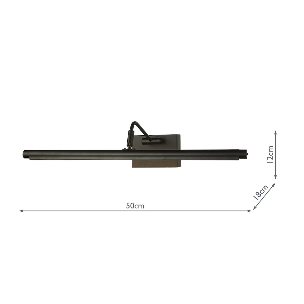Tyrus 50cm Picture Light Satin Black LED - The Tyrus 50cm picture light in matt blackoffers an elegant way to illuminate larger artworks and display walls. Its elongated, slim profile is paired with advanced LED technology and a CCT button, giving you the choice of cool, neutral or warm white light to suit your setting.