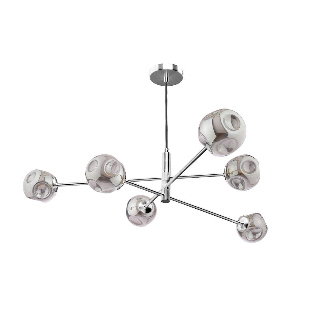 Vignette 6 Light Pendant Polished Chrome With Closed Organic Smoked Glass - Part of our Mix & Match range of lighting, the Vignette 6 Light Pendant creates a striking focal point with its balanced form and elegant proportions. Perfect for dining areas, living rooms, or statement bedrooms, it blends decorative drama with functional light. Paired here with our Closed Organic Smoked Glass
